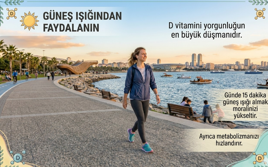 - Güneş Işığından Faydalanın: D vitamini, yorgunluğun en büyük düşmanıdır. Günde 15 dakika güneş ışığı almak moralinizi yükseltir. Ayrıca metabolizmanızı hızlandırır.